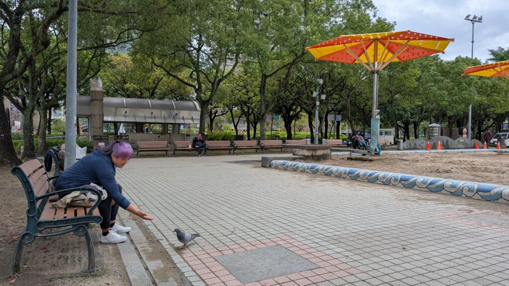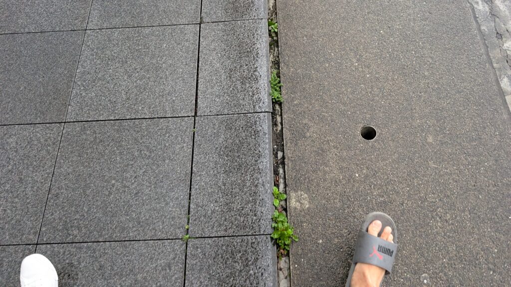 For half of the first 10 days, it was raining on and off. Instead of wearing boots, this time I tried out a rubber shoe cover that I squeeze over my sneakers to keep the water away. It has bottom grips to help it keep steady, but the city hall area around Humble House had a lot of smooth stone surfaces and we were often almost slipping. We had to walk carefully and watch where we stepped. The most dangerous surfaces were the drain grids made of metal.You would think the grid structure would provide grip, but the metal actually made it super slippery.