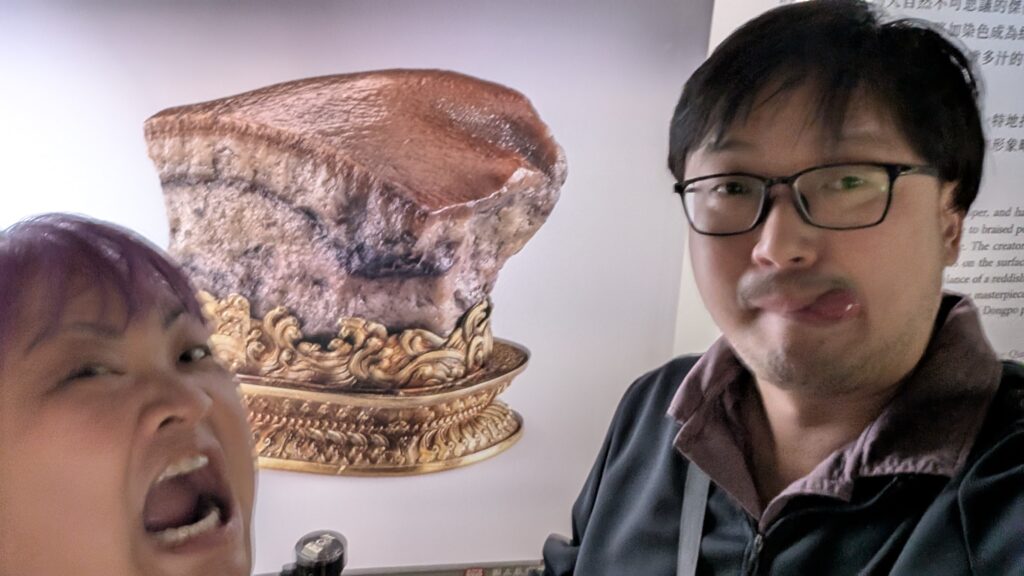 One day, we went to visit the National Palace Museum. Christine wanted to show me their Jadeite Cabbage and Pork Belly sculpture. Unfortunately both were on loan in other museums. Gemini suggested checking out the Mao Gong Ding bronze cauldron instead.