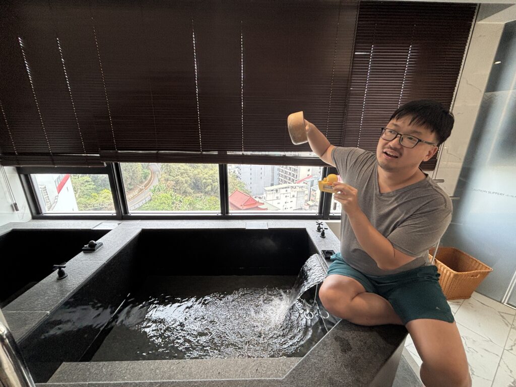 This time we didn’t hit the upgrades jackpot. We either got one-level upgrades or no upgrades, hotels often citing their reservations being all booked out. We spent a lot of time indoors, so it would have been great to get a free upgrade to a room with work desk space and a separate living room if possible. Wyndham Sun Moon Lake was the weirdest case. We got a nice upgrade from their “Superior” base room to “Deluxe with Lake View”, with a giant bathtub – almost half of the room was the bathroom with a hot bathtub that could easily fit four people, plus a separate cold bathtub, probably for people to do the hot/cold swaps. However, our room didn’t have a regular sized desk and chair like the other rooms. We had a coffeetable and our couch looked stiffer than the one in other rooms. It was a strange trade-off. Also the hallways were very hot during our entire stay.