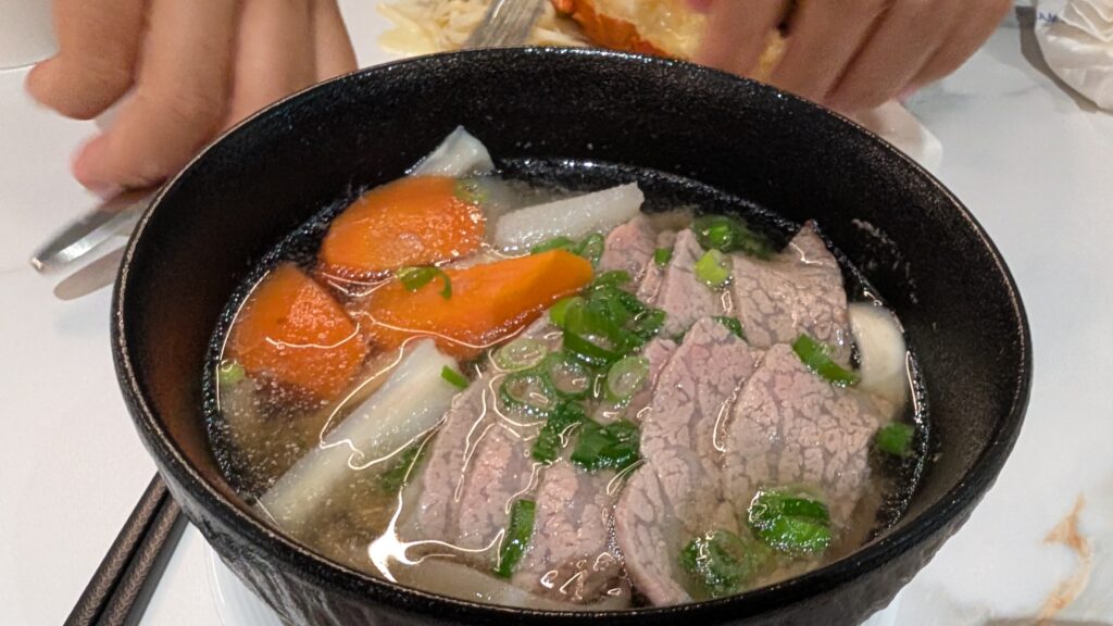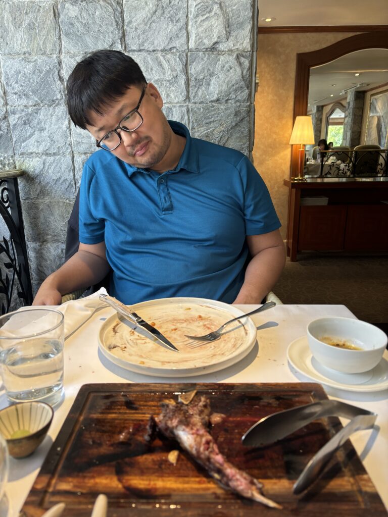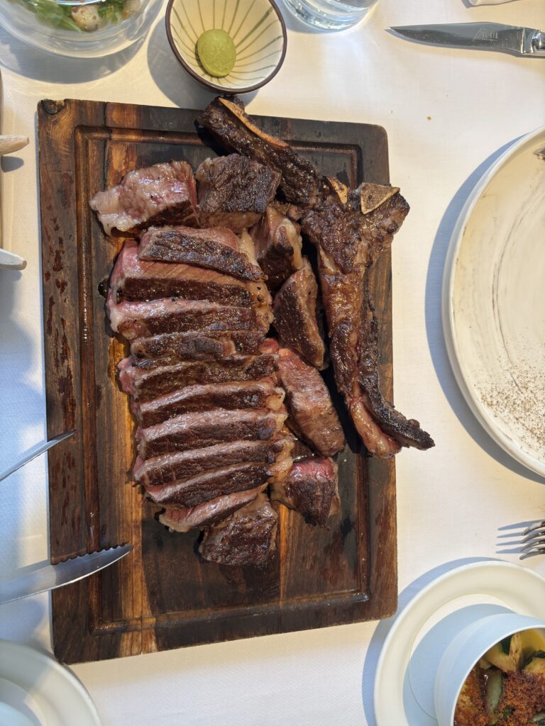 Our most expensive meal was lunch at the Bel Air Grill, a Michelin-guide steakhouse housed inside the Grand Hyatt Hotel. We got a F1 Hokkaido 800g Ribeye set menu for two. The price was $300 USD (10,000 NTD) but we applied the $100 Amex FHR credit and got additional discounts due to Hyatt Globalist status and the final bill came out to $170. It had artsy, pretentious side dishes like scallops with vanilla sauce or truffle soup that Christine didn’t enjoy as much. I was fine, I eat anything. Then they finally brought out a big empty wooden cart. Wow, are they going to bring out our meat and cut it right there and then? Then they brought out this huge, whole piece of bone-in ribeye steak and placed it on the cart. The waitress told us “you can record videos now”, so we pulled out our phones, and without any further explanation, she poured alcohol over the steak and lit it on fire. Cool! But then, when we finished taking photos, she took back the meat and the entire wood cart back to the kitchen. So that entire step existed just for guests to take photos. They didn’t even ask us whether we wanted it or not – it was just included by default as part of the set course. Hilarious what people expect in a fancy steakhouse. The ribeye was delicious. AfterwardsI was so full that I couldn’t eat for the rest of the day. Next time, we’ll know to order something smaller.