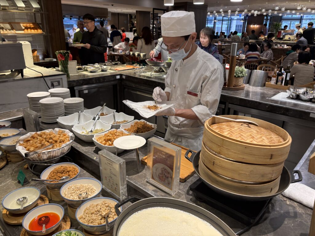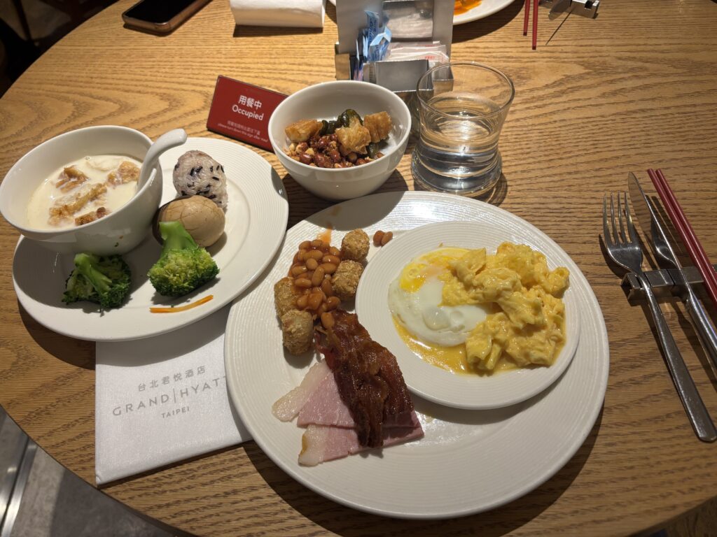 Episode is a music-themed hotel. You see and hear Taiwanese music everywhere in the hotel, with a focus on Jay Chou, who was big in the pop music scene during the 2000’s. Christine listened to him a lot in college! They had a dedicated CD player in our room with a single music CD by Jay Chou. Their exec lounge was pretty nice, it’s a cozy living room/pub style space where the staff also handle check-in. They had drinks and popcorn available throughout the day, and during 5pm-7pm there were nicer drinks (i liked their black bean soymilk box) and sometimes some cooked snacks like fries, fried noodles and fishcake. And we were surprised to learn that during the globalist breakfast, they let us order up to 4 dishes each morning. So we ended up trying it and we couldn’t eat anymore the rest of the day.