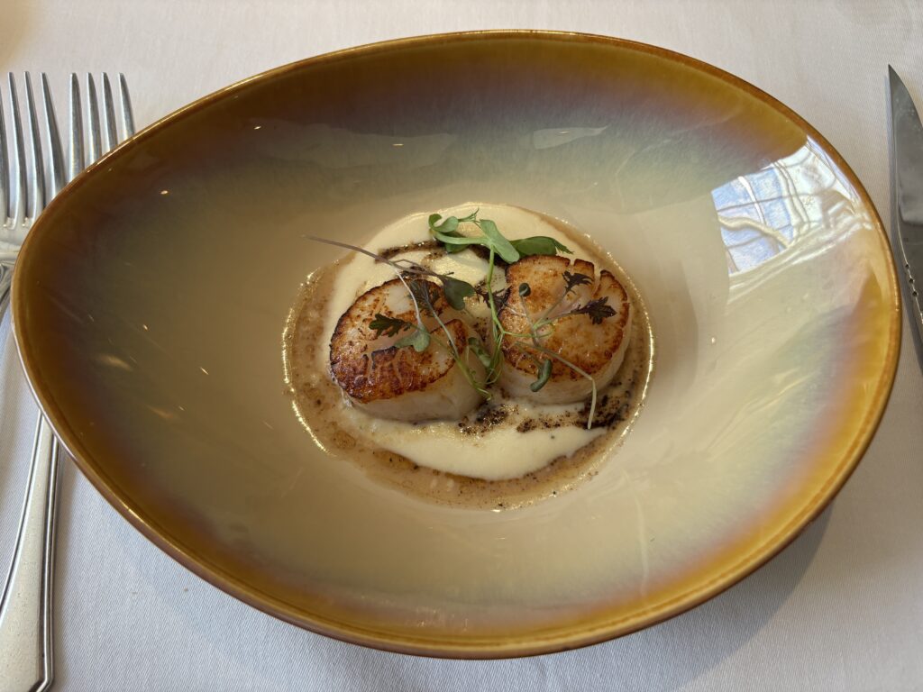 With Christine’s Wyndham Business credit card Platinum status, we had access to Wyndham’s Exec Lounge. It’s a small place that opens 2pm to 10pm and serves desserts, “happy hour” dinner, and basic drinks. During Happy Hour, we could choose a main course item for to be cooked. Hotel staff warned us that main course would not be available every night – it ran on their own schedule. Christine ordered the lobster dish both times.