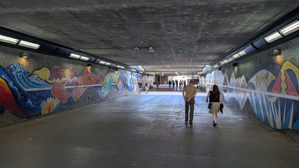 We ended our Sunday relaxing in the DOCO wind corridor to escape the hot sun. Tomorrow morning, we plan to head to the airport, debating between a taxi or the bus depending on the price and the impending rain. It was a successful trip, even if the River Parkway entrance looked nothing like the simple opening I remembered from fifteen years ago.
