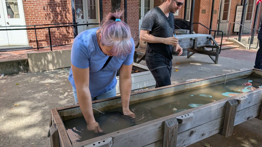 Afterward, we explored the highly touristy Old Sacramento area, walking through the “gold rush age” streets with wooden walkways and cobblestones. We watched the 1800s steam train excursion and horse-drawn carriages before stopping at Sacramento Sweets. That shop was a fascinator, selling elaborate ice cream swirls and an unexpected combination of chocolates and popcorn.